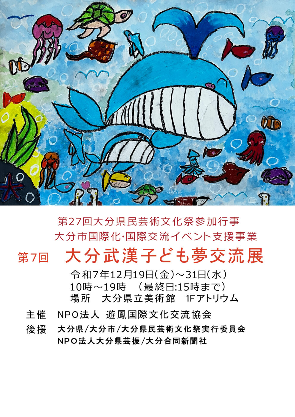 大分市と姉妹都市である武漢市の幼小中学校から作品を募集し、大分の子どもたちに中国文化に親しんでいただける機会を提供いたします。次世代を担う子どもたちに対して、芸術を媒介とした国際交流の種を幼少期から育みます。
